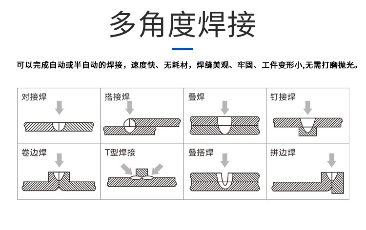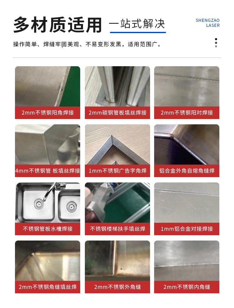 1、适应各种金属材料的焊接,碳钢、不锈钢、高强钢、铝、铜以及合金材料;