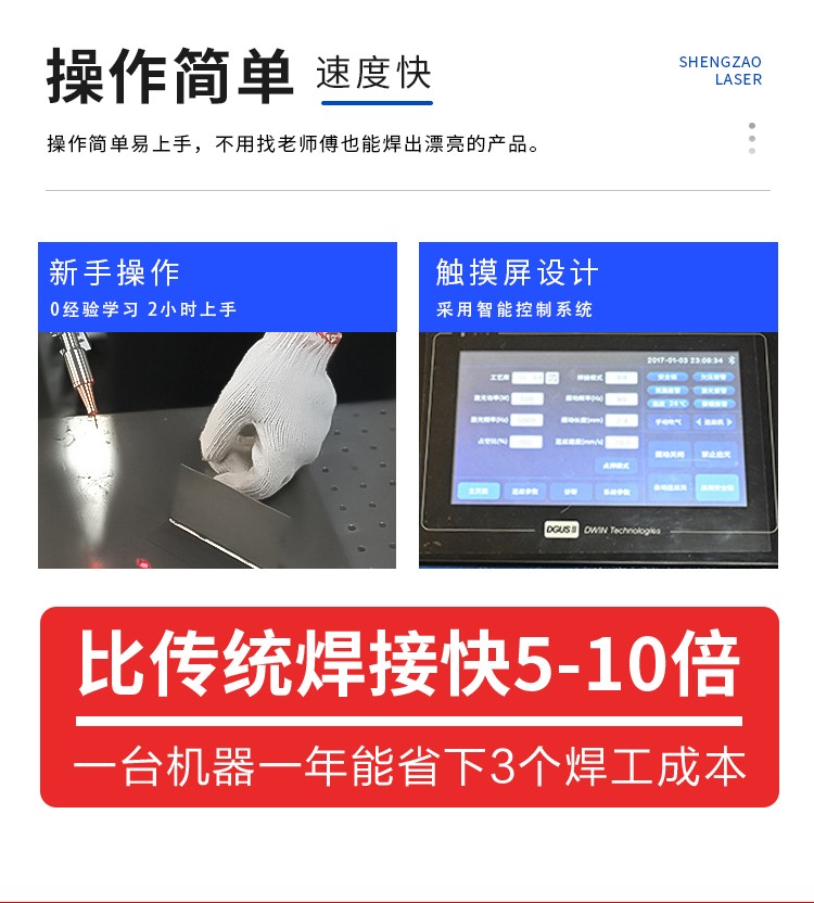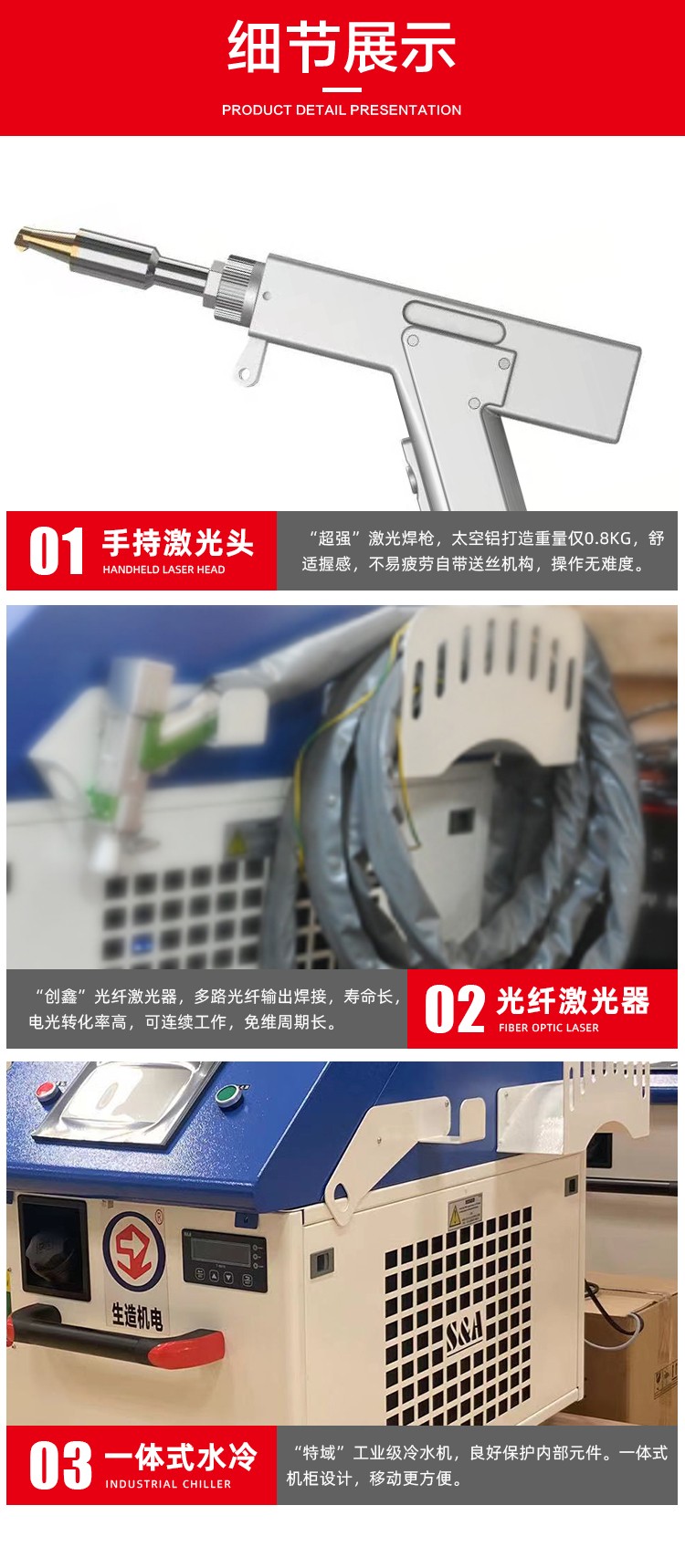 SZ-F2000手持式激光焊接机采用一体化设计,结构紧凑美观,具有光束模式好、能量稳定、性能稳定,使用可靠、焊接速度快、适焊范围广、消耗品和易耗件使用寿命长等特点,同时充分考虑备在批量生产的各种参数,从细节上做到关键参数可调和数据显示闭环。