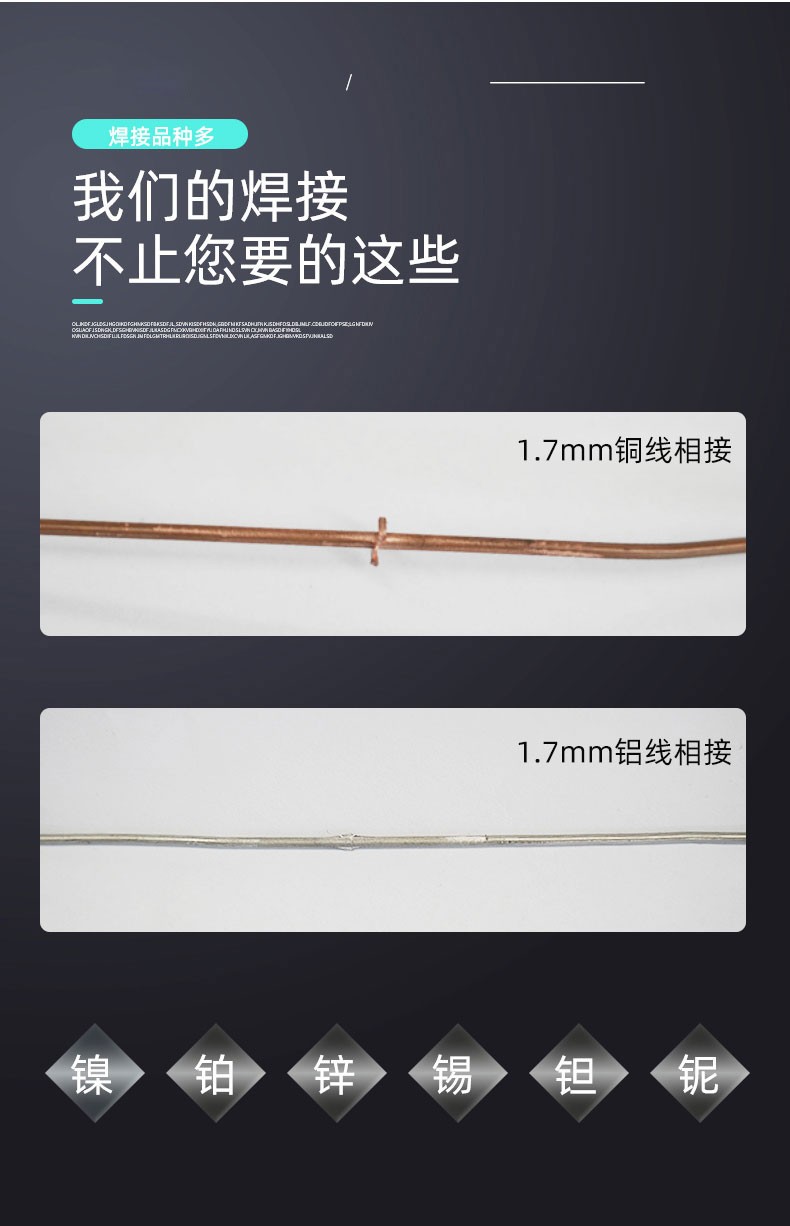 6、特别适于异种金属和热焊法无法实现的一些金属电线电缆材料和产品的焊接。
