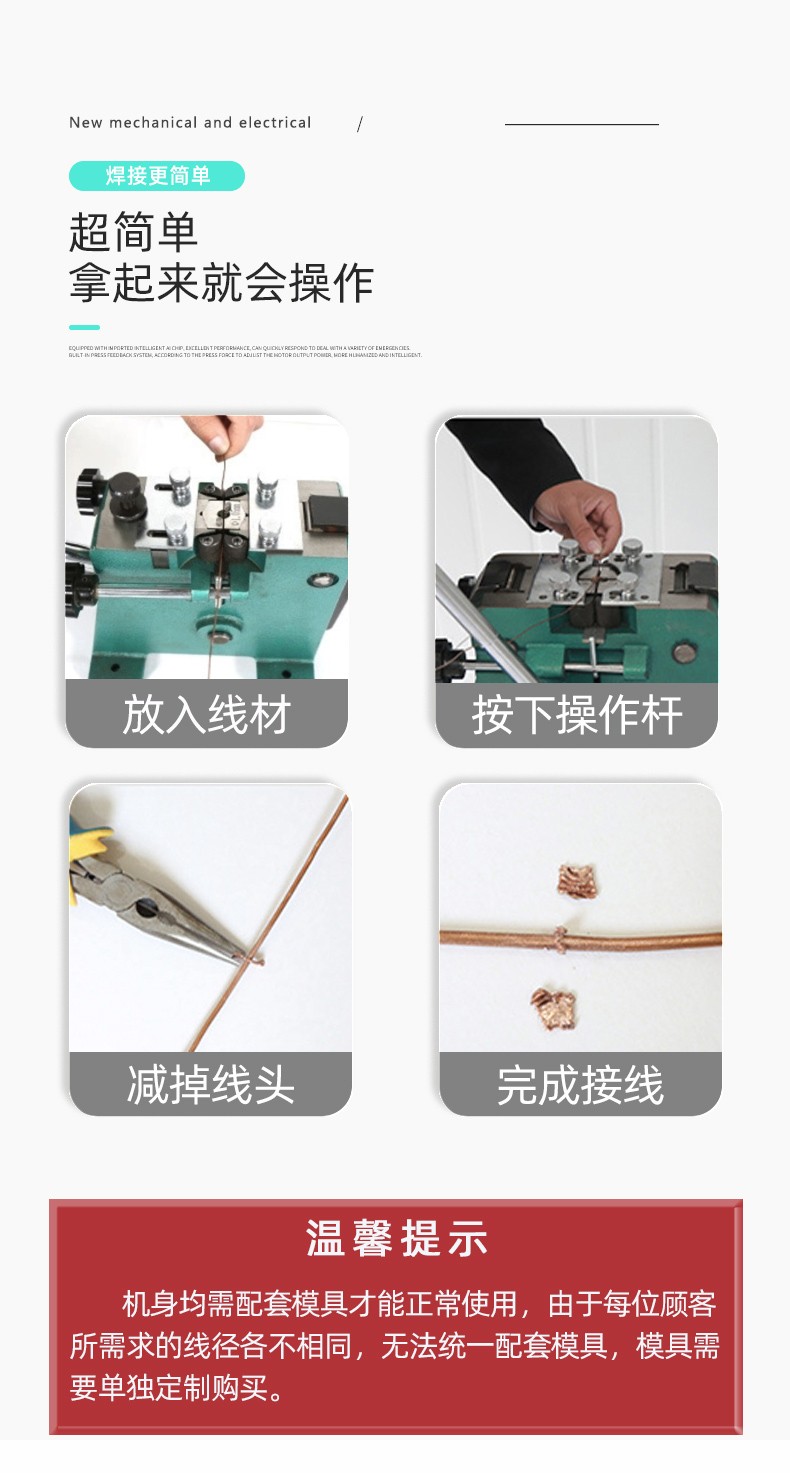 1、可以焊接其他截面的如矩形的线(但需特制模具)。
