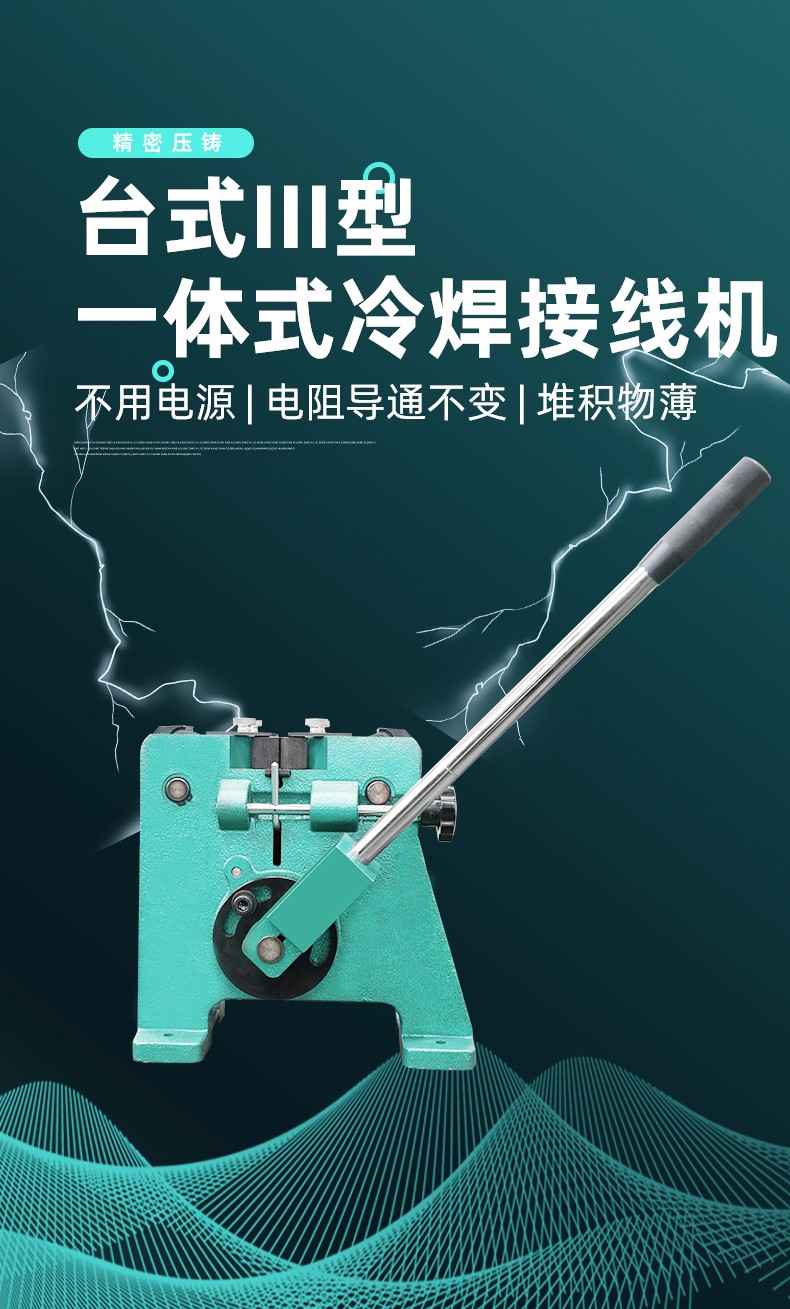 2、冷接机原理:冷接机是一种不需要任何助剂和电能源,它是使金属线材通过专用的模具,在一定的挤压下,把其中纯金属晶格相互掺压结合,实现分子原子结构的连接原理,从而焊接各种有色金属材料的冷焊设备。